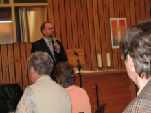 Die Referentin, Frau Hess, kam mit Verspätung an, da sie von den vielen Baustellen und Umleitungen in Maichingen etwas irritiert wurde. Die zweite Vorsitzende, Traudl Schilling, begrüßte die Anwesenden. Als einziger Mann in der Runde heißt Pfarrer Baumgärtner die Landfrauen in seinem Gemeindehaus willkommen und überlegt, ob eine Veranstaltung dieser Art nicht auch für Männer ansprechend wäre. Mit einem gemeinsamen Lied wird das Frühstück eröffnet und an den einzelnen Tischen entwickeln sich augenblicklich rege Gespräche. |