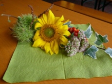 die Erstellung eines herbstlichen Tischschmuckes.